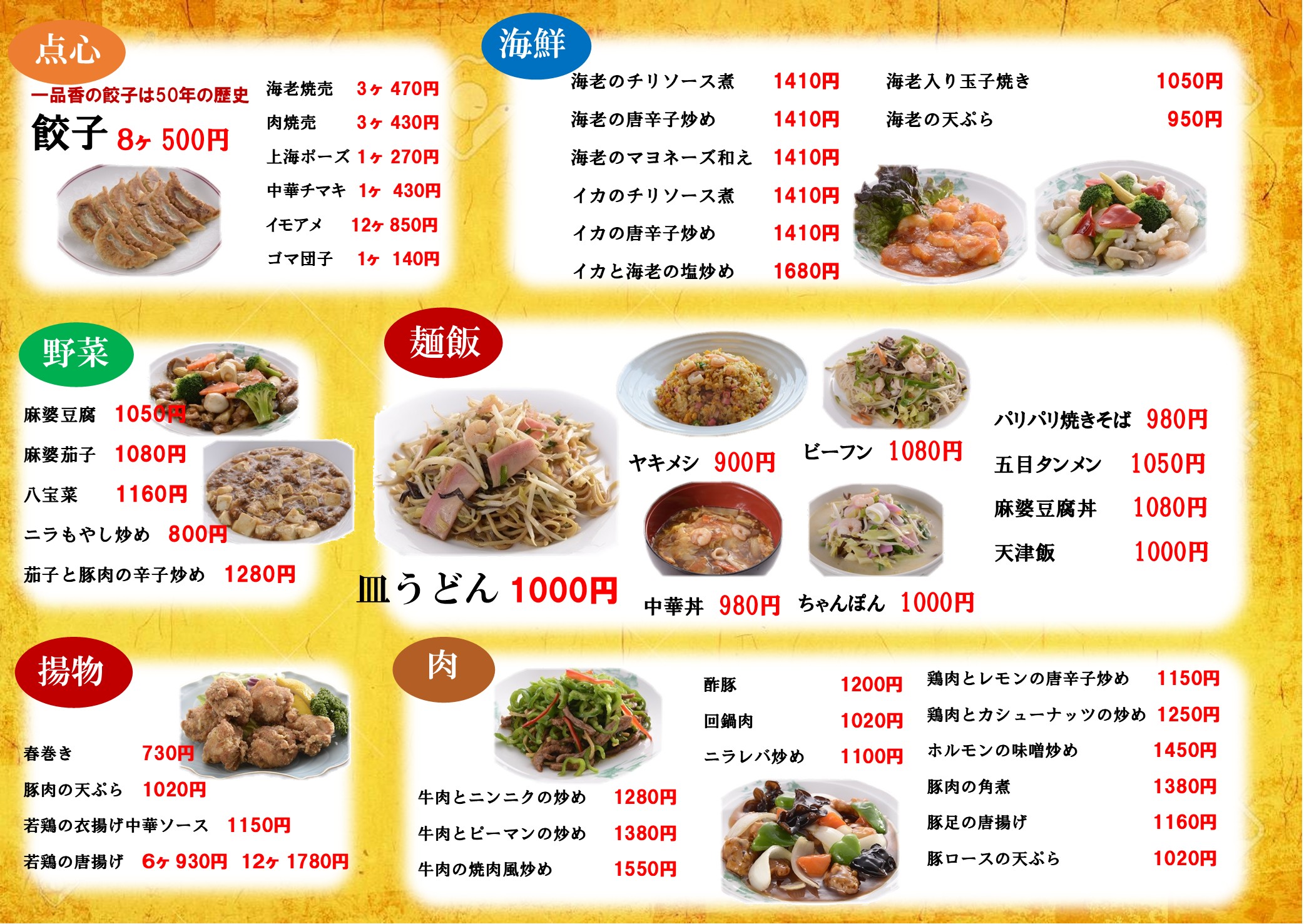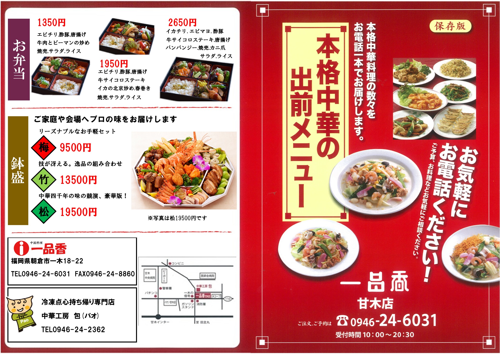 お持ち帰り以外にも定番料理やセットメニューを出前します(要予約)